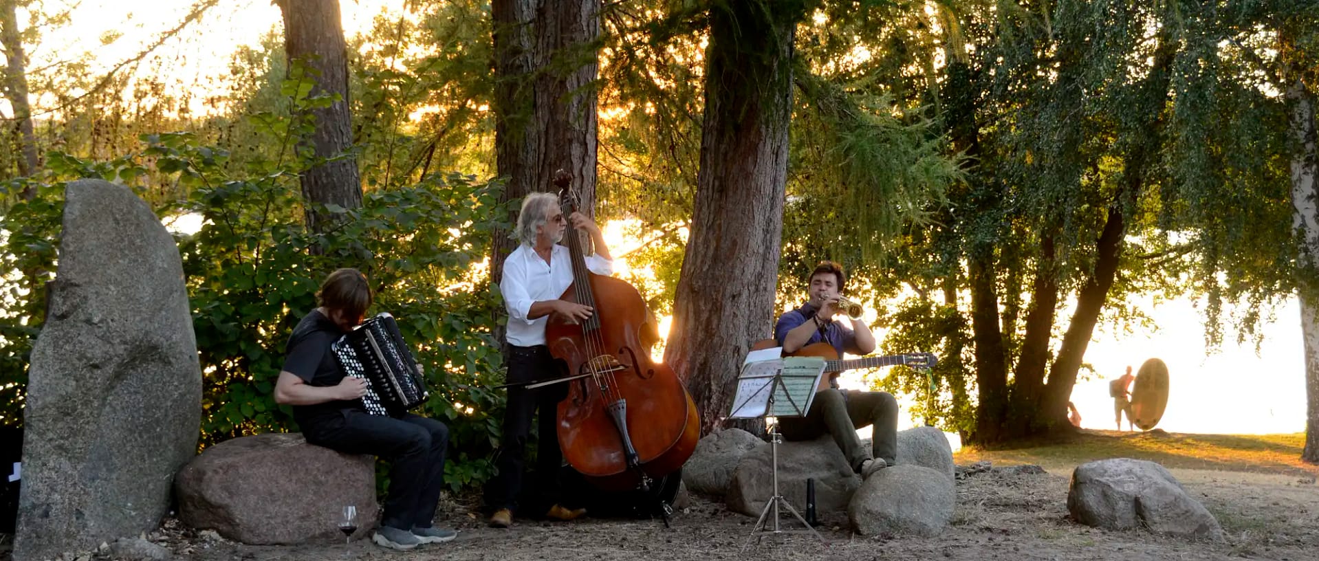 Wir starten mit einem Apéritif das sommerliche Flanier-Konzert mit dem Trio Laccasax um den Akkordeonisten Timofey Sattarov, mit dem Saxophonisten Andrey Lakisov und dem Kontrabassisten Bernd Gesell. In den Kurpark Kolonnaden beginnend flanieren wir über ausgewählte Weinproben-Stationen bis zum Seepalais, wo der Abend im Garten ausklingt.