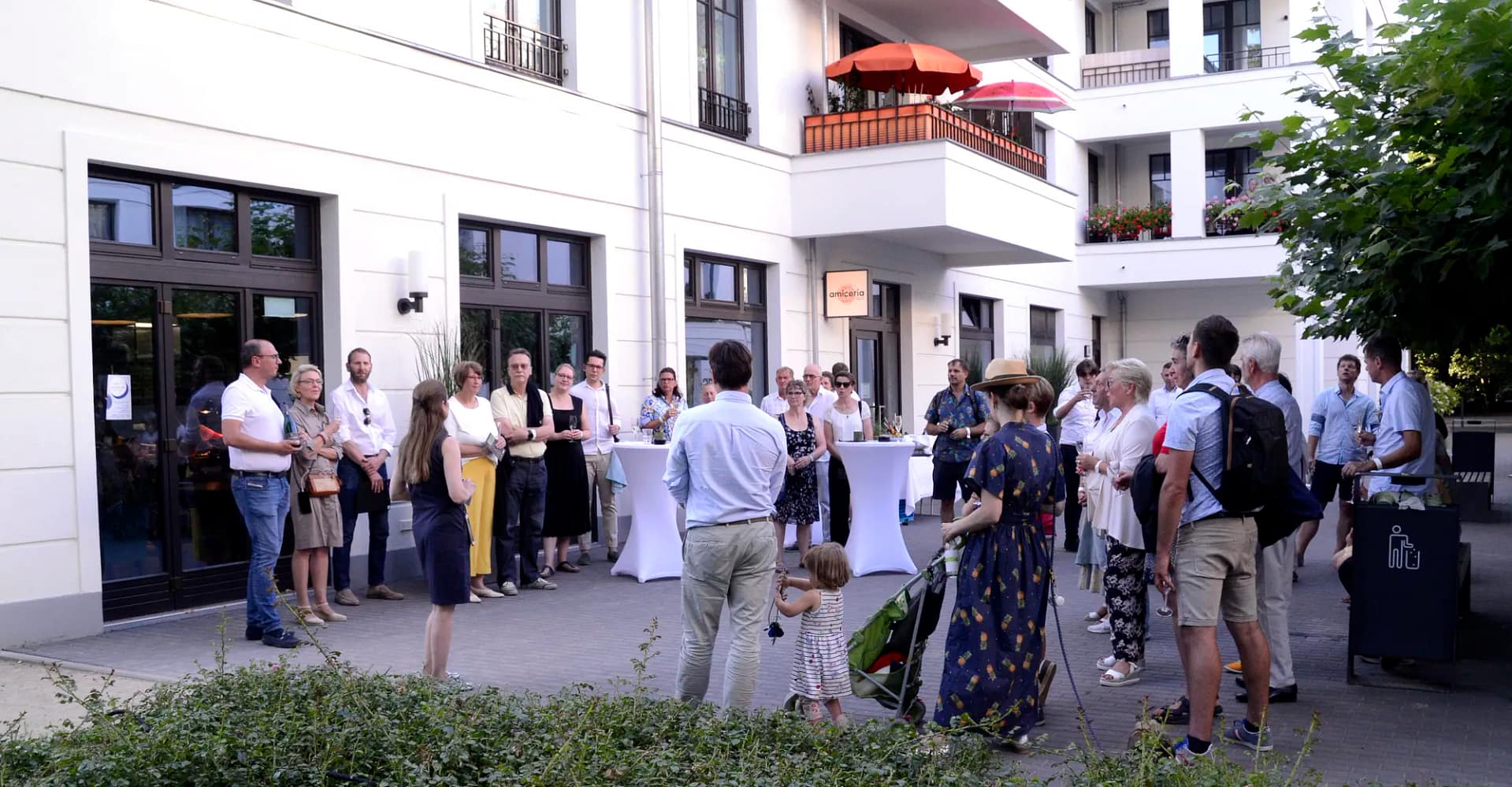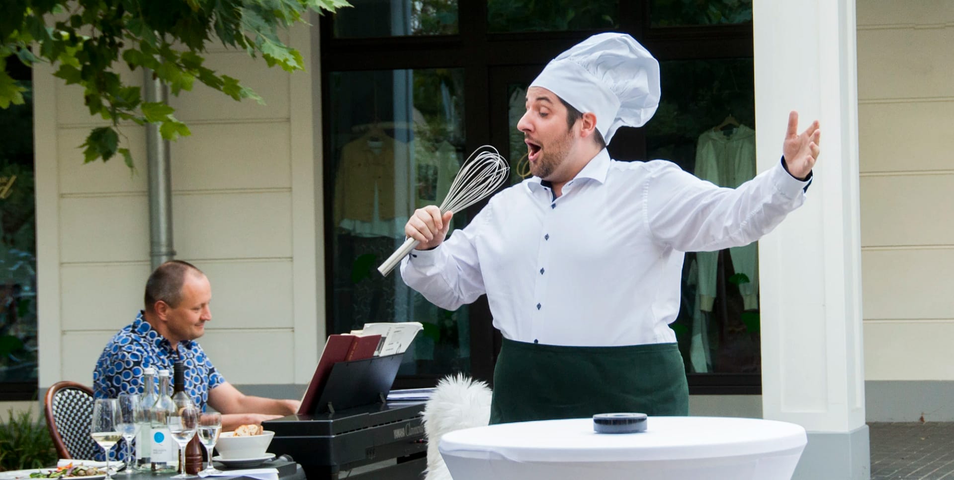 Dolce Vita alla Italiana: Nehmen Sie Platz an der langen Tafel in den Kolonnaden der amiceria und genießen Sie Opernarien der Stars von morgen aus dem internationalen Meistersängerkurs auf dem Eibenhof in Bad Saarow.
